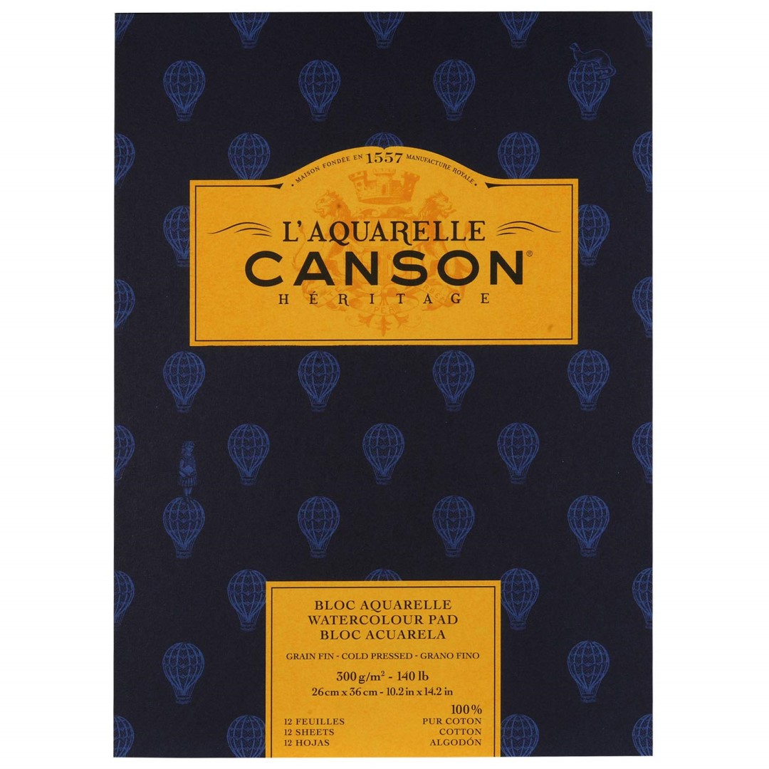 Akvarelový papier zo 100% bavlny, CANSON Heritage 300g/m2, za studena lisovaný, 26x36cm, lepený, 12 strán