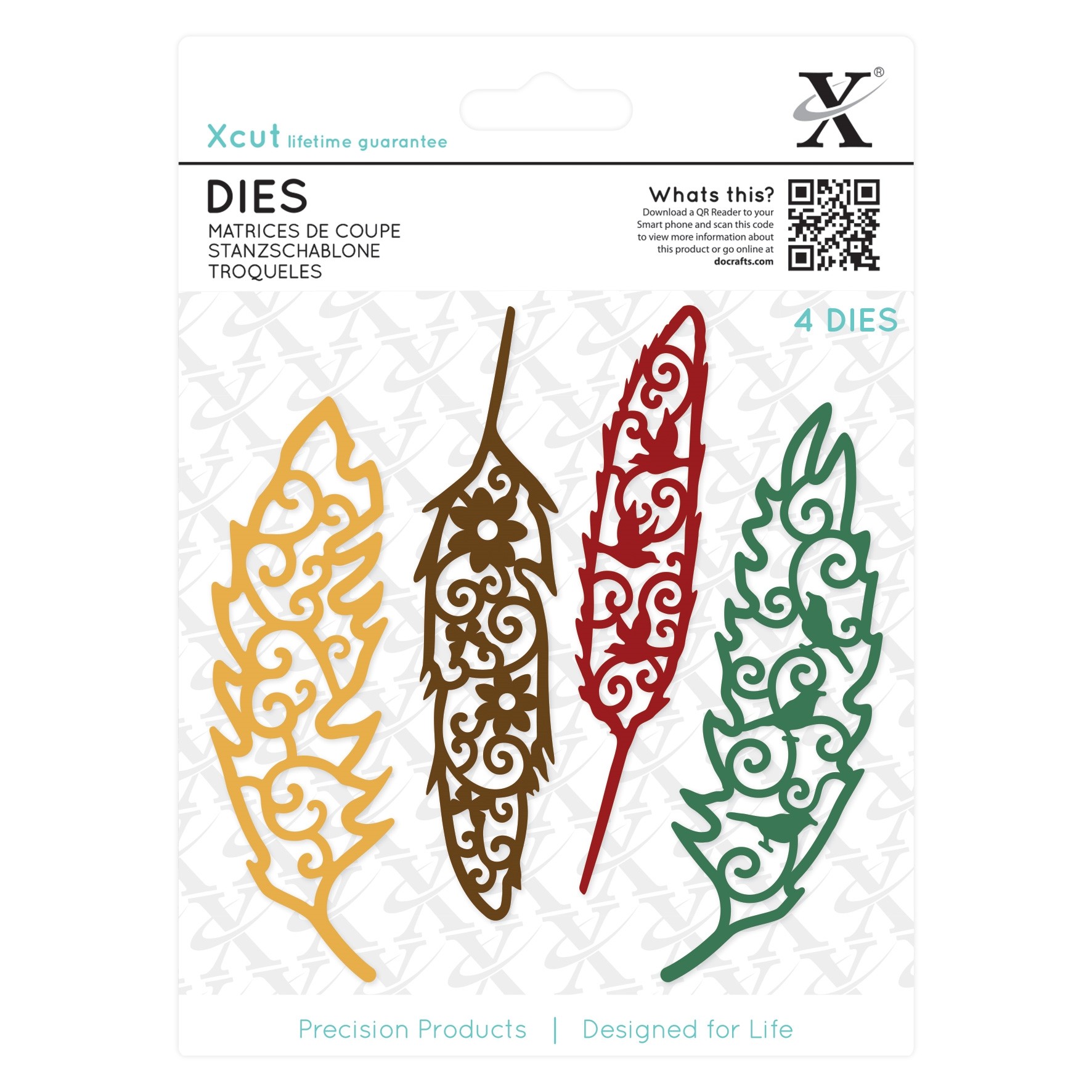 DOCRAFTS Xcut Vyrezávacie kovové šablóny - filigránové pierka 4ks