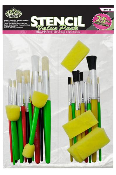 Štetce ROYAL and LANGNICKEL, v balení 25 ks. Balenie obsahuje rôzne druhy štetcov - prírodné, syntetické, okrúhle aj penové. Po skončení maľovanie umyte vodou a mydlom. Pri použití farieb na olejovej báze použite špeciálny čistiaci prípravok na štetec.