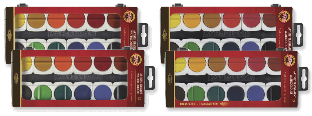 - Sada - 2x krycie + 2x transparentné vodové farby