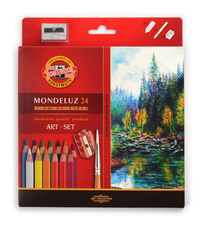 Kvalitné umelecké akvarelové farebné pastelky KOH-I-NOOR MONDELUZ (z lipového dreva) s vodou rozmývateľným efektom - 26 ks.