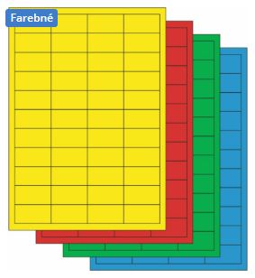 Samolepiace etikety 48,5x25,4 mm farebné papierové, na hárku A4, pre laserovú a atramentovú tlač