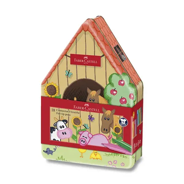 Zábavné tenké fixy Faber Castell v praktickom boxe v tvare DOMČEKA PRE ZVIERATKÁ.
