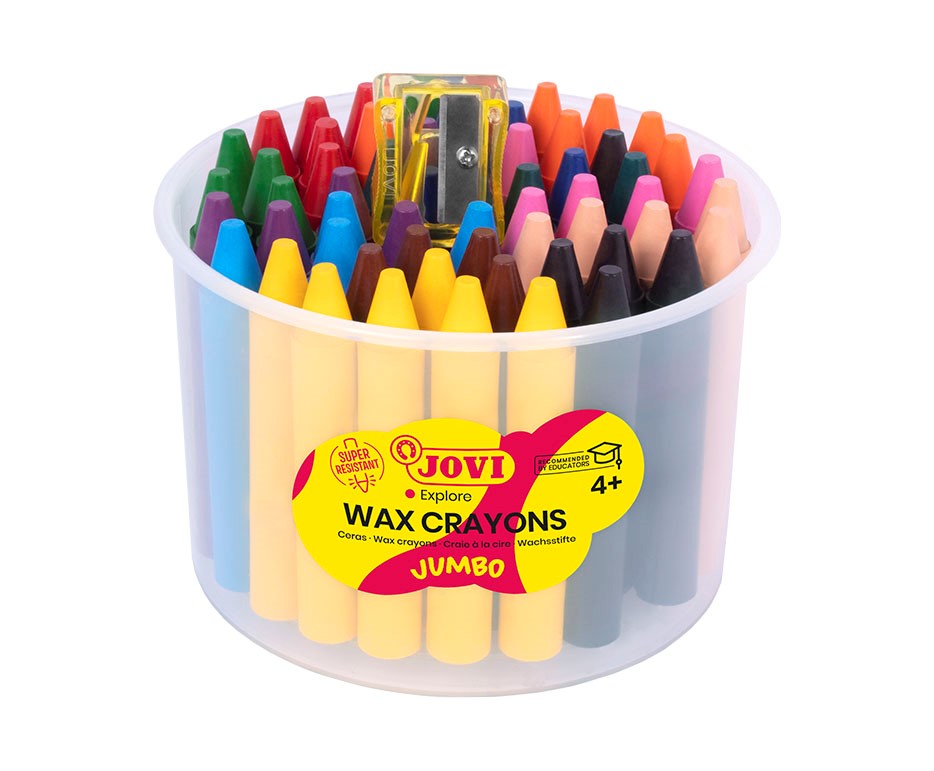 Voskovky JOVI JUMBO okrúhle, 60 kusov v 12 farbách so strúhadlom