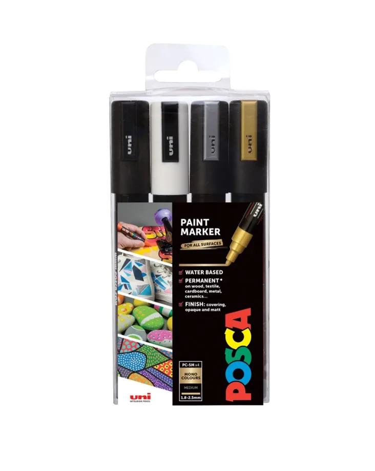 - Sada Akrylových fixiek POSCA PC-3M, šírka stopy 0,9-1,3mm, 4 farby
