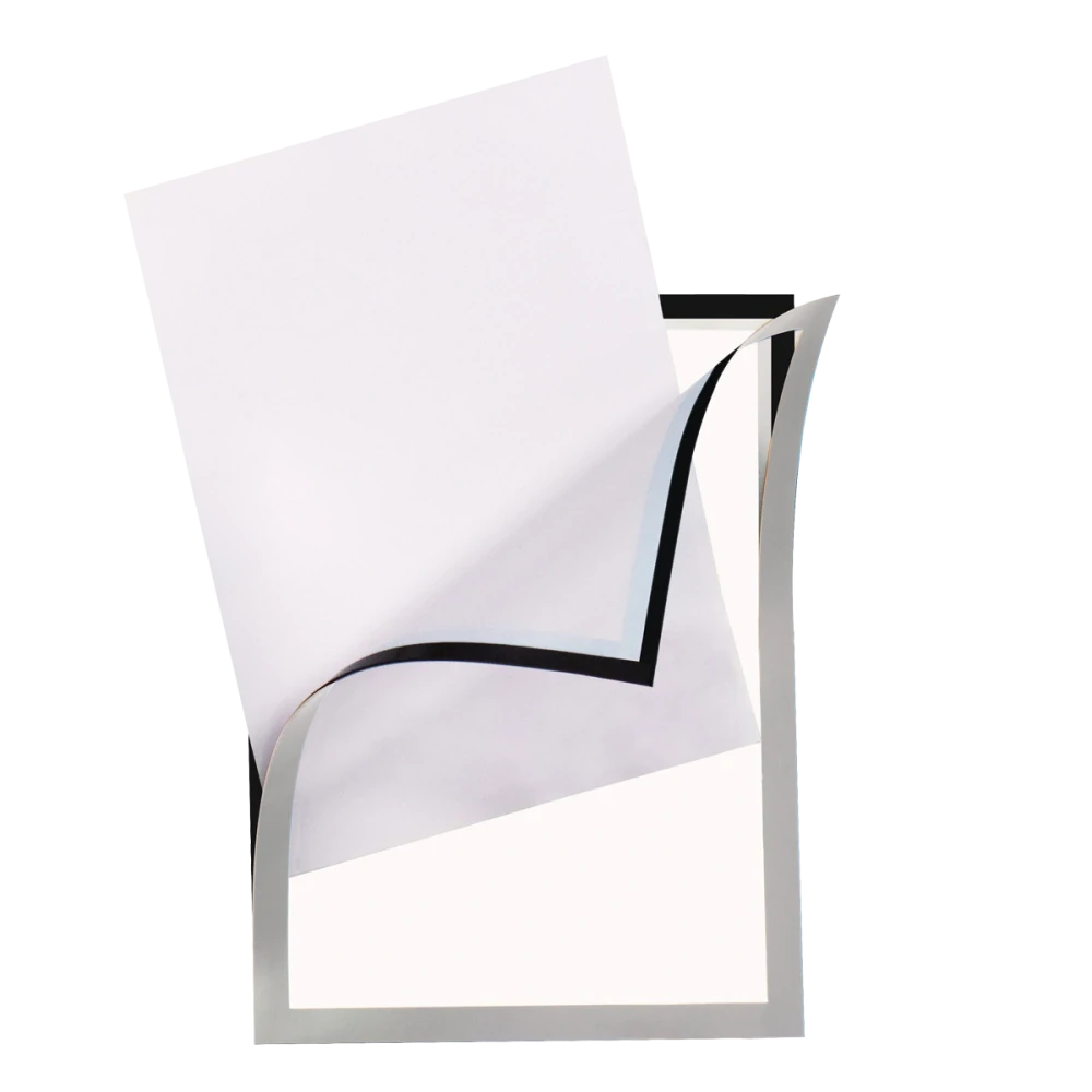 Farebne rozlíšený rámček zo šetrnejšieho PP materiálu s ostrými rohmi. Široké otvorenie rámčeka z troch strán na ľahké vkladanie dokumentov. Fixácia pomocou magnetického lemu. Transparentné vyhotovenie umožňuje obojstranné zobrazenie obsahu na sklenených plochách. Permanentne lepiaca zadná strana na jednoduchú inštaláciu. Vhodné použitie v obchodoch, hoteloch, reštauráciách, priemysle alebo školách.